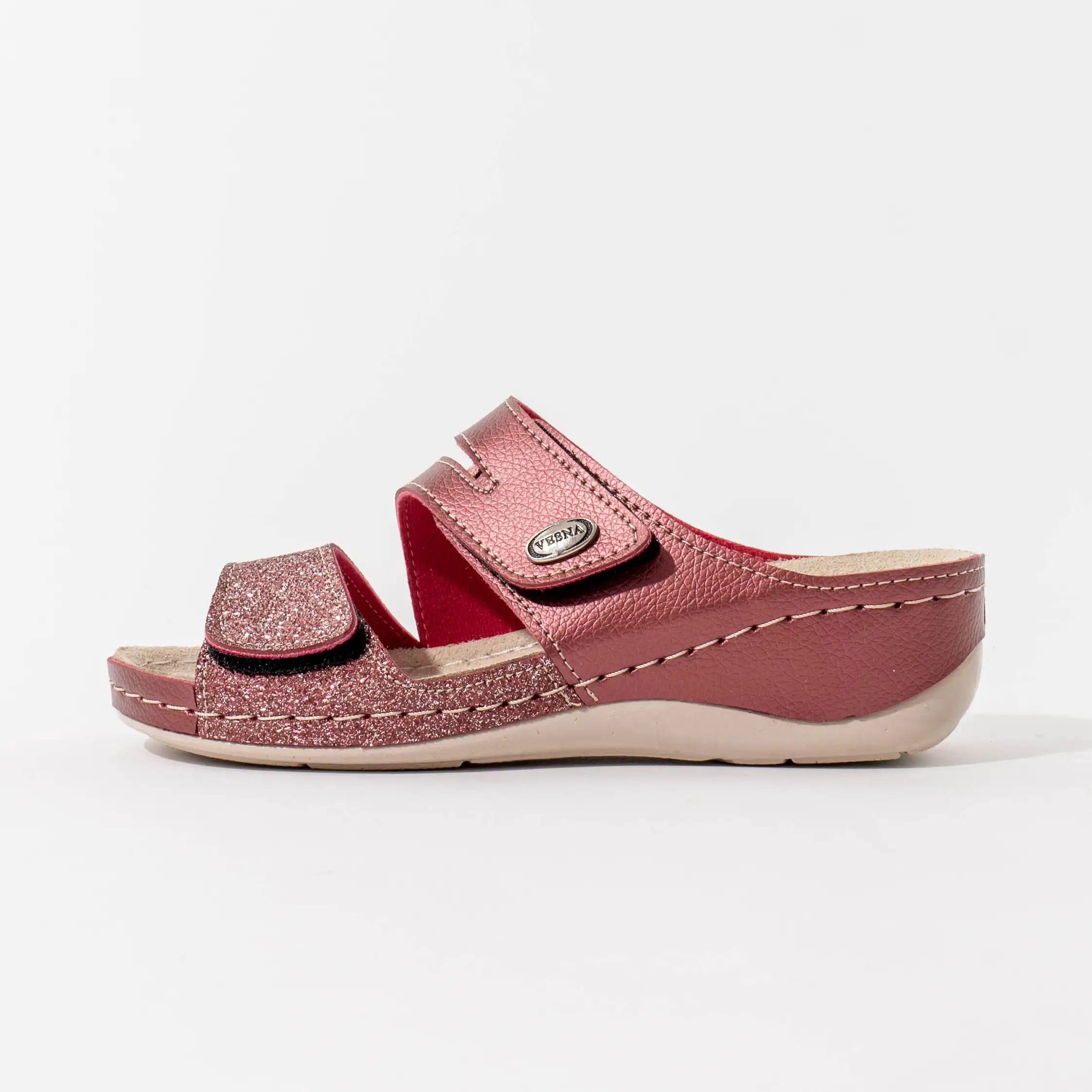 Papuče izrađene od eko kože pružaju mek i udoban osjećaj, dok kožna tabanica dodatno pojačava udobnost.