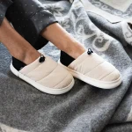 Unutrašnjost je obložena mekanim flisom koji zadržava toplotu, dok lagani đon osigurava stabilnost i tiho kretanje po svim podlogama.